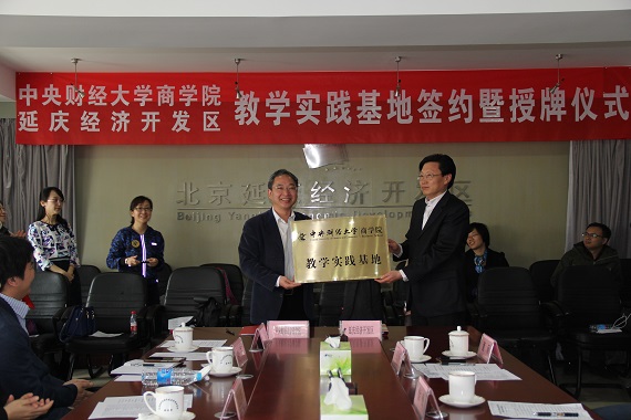 2015年4月18日上午,365官网beat365在线登录官网与延庆经济开发区共建教学实践基地活动在延庆经济开发区举行。beat365在线登录官网院长王瑞华教授、党总支书记葛建新教授、副书记林嵩教授,MBA教育中心副主任贾晓菁教授、MBA学生工作部孔伟明、董硕老师,延庆县委组织部常务副部长徐赟、人才科科长王昕,延庆经济开发区主任付强、副主任高翔、副主任黄云志,以及中财MBA财务俱乐部从事财务、金融、投资、企业管理等方面工作的beat365在线登录官网优秀校友、在校生计四十余人参加了活动。