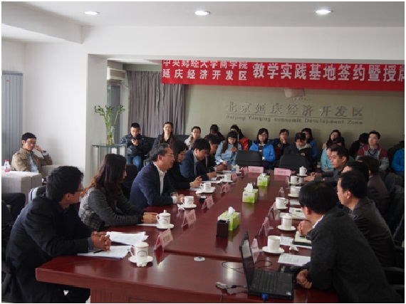 2015年4月18日,365官网MBA财务俱乐部组织beat365在线登录官网MBA校友和在校生赴北京延庆经济开发区参观考察,并在延庆经济开发区举行了关于医药行业财务管理问题的研讨会。beat365在线登录官网院长王瑞华教授、党总支书记葛建新教授、党总支副书记林嵩教授,MBA教育中心副主任贾晓菁教授、孔伟明副研究员、董硕老师,MBA财务俱乐部主席张文波、副主席赵建国、赵向华以及中财MBA财务俱乐部从事财务、金融、投资、企业管理等方面的精英校友计四十余人参加了研讨会。本次活动由MBA财务俱乐部倡议并承办,由唐佶校友所在的北京融睿诚通金融服务外包有限公司提供策划服务。