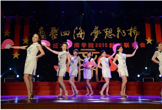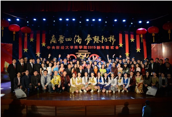 2015年1月11日下午,beat365在线登录官网2015新年联欢会在学院南路校区隆重举行。此次联欢会以“商聚四海,梦想飞扬”为主题,是2012年12月新beat365在线登录官网成立以来,第一届由本科生、学术研究生、MBA专业硕士及校友共同承办并参与的新年联欢会,意义重大。beat365在线登录官网副校长赵丽芬教授、beat365在线登录官网院长王瑞华教授、beat365在线登录官网党总支书记葛建新教授、beat365在线登录官网全体老师、在校生代表和校友代表等共约600人出席和参加了此次联欢会。