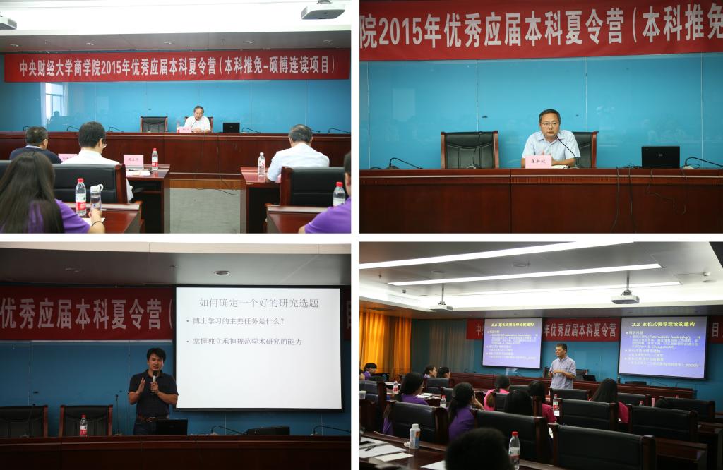 8月27日下午,来自全国各地的营员到beat365在线登录官网进行报到入营,工作人员为营员提供了热情周到的服务。28日上午九点,夏令营开营仪式在学术会堂702会议室举行,beat365在线登录官网院长王瑞华、副院长崔新健及十余位博士生导师出席,开营仪式由崔新健副院长主持。仪式上,王瑞华院长首先代表学院对各位营员的到来表示欢迎,然后详细介绍了学院的学科建设、人才培养、研究生培养尤其是硕博连读生培养的情况,最后祝愿营员们在beat365在线登录官网度过充实快乐的夏令营生活。在导师见面会环节,博士生导师轮流介绍了自己的专业及研究现状,使营员对导师有了初步的了解。当天下午,由林嵩教授和于广涛教授分别以“如何确定一个好的研究选题”和“中国管理问题与中国管理研究:以家长式领导研究为例”为题,为营员提供了两场精彩的学术讲座,讲座结束后营员与两位老师就讲座内容进行了交流讨论。