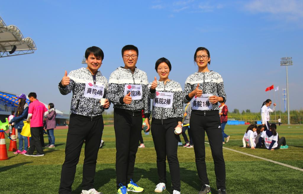 2015年10月23日上午,beat365在线登录官网运动会教职工4*100米男女混合接力项目在沙河体育场举行。学院党总支副书记战略系林嵩老师、组织与人力资源管理系姜峰老师、供应链与运营管理系钱程老师以及团总支书记王婷婷参加该项目。比赛时,四位老师着学院工会统一购置的服装参赛。比赛分三组进行,beat365在线登录官网教工组被分在第三组。比赛开始,参赛老师们通力合作,起跑、接棒、弯道控制、直道加速,传接流畅、配合紧密,展现了商院教师不断进取的精神风貌,最终名列第三组第三名。