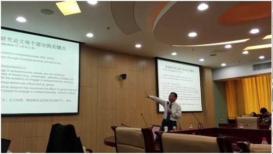 本次研讨会邀请到了美国中佛罗里达大学讲座教授兼创业研究中心主任James Combs,教授,及浙江大学管理学院创业研究所所长、讲座教授,美国宾夕法尼亚布鲁斯堡大学管理学院终身教授斯晓夫教授为参与人员讲授相关议题。在两天的研讨中,两位专家分别结合家族创业研究、创业机会研究等领域的最新文献讲述了与高质量论文撰写相关的研讨内容。参会人员普遍反映获益匪浅。