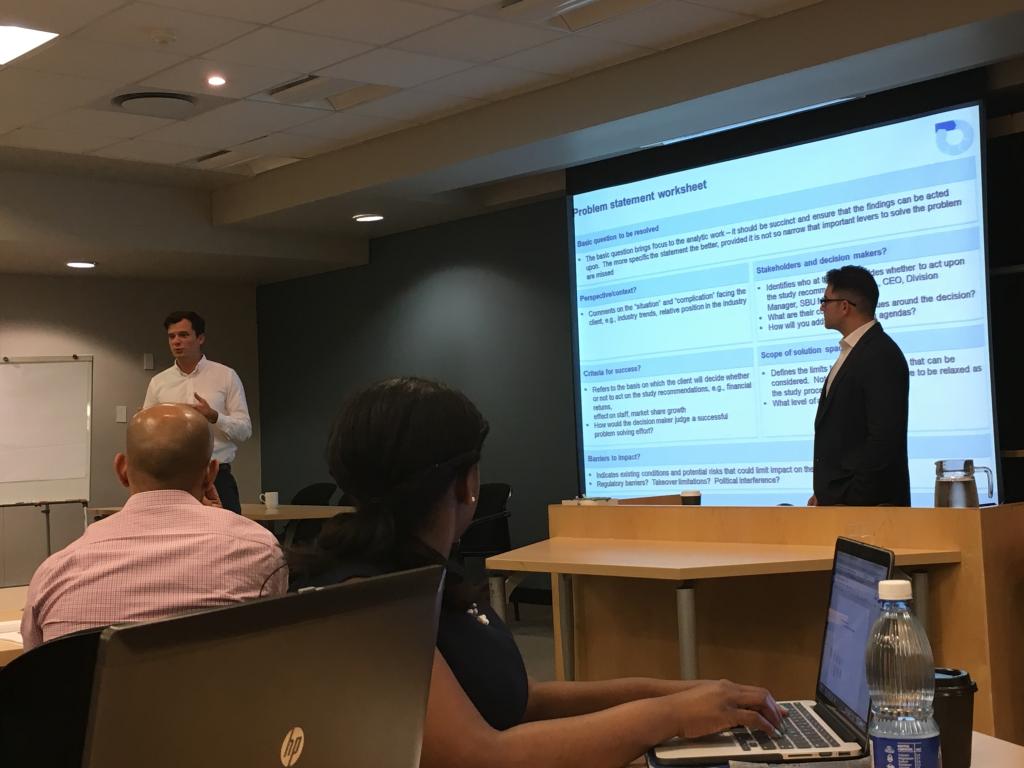 为了帮助同学们出色的完成咨询项目和进行成果展示,南非站活动特意安排了《战略咨询——来自于一流专家的建议》、《演讲技巧》两个专题讲座。来自于麦肯锡的两位管理层专家从管理咨询流程方面指导大家在做咨询设计时会遇到的实际问题,并引导大家在各自项目中建立“问题树”分解问题,采用漏斗法砍掉非关键“树枝”,优先解决关键重要问题,根据问题寻求方案,对症下药;两位专家根据各组项目的进程,指导各组为企业制定“甘特图”,制定周期目标,实施详细计划。来自于戈登beat365在线登录官网的Tanya从演讲仪态、肢体语言和与观众交流等方面强调了基本外部呈现技巧,并深入讲解如何从Presentation内容本身传达中心思想,吸引观众,调动现场气氛。