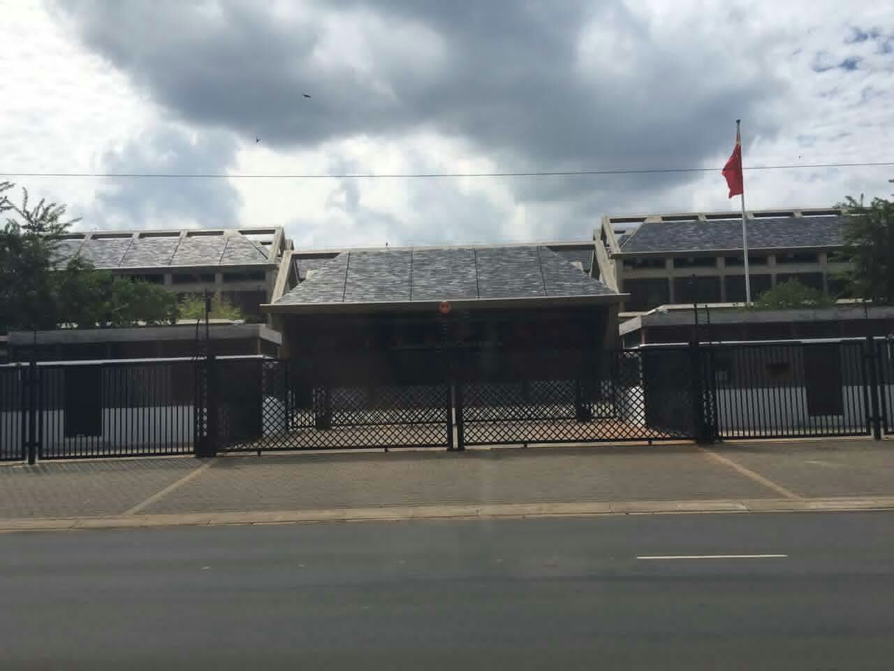 在行政首都比勒陀利亚,街道两旁种满了紫葳树,故称“紫葳城”,每年10月至11月,百花盛开,全城举行节日庆祝,时达1周。比勒陀利亚位处约翰内斯堡北方56公里的内陆高原上,是全国四大城之一,中央政府机关所在地。人口220万,白人居多,面积3200平方公里。风光秀美,有“花园城”之称。我们经过了使馆区,瞻仰了中国大使馆,这是一座中国传统汉代风格建筑,门前两只大红灯笼非常有中国特色。