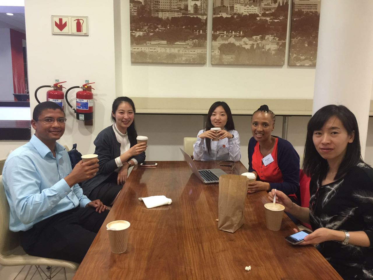 三方的指导教师在理论、方法和内容上的指导始终贯穿咨询项目的各个环节; 而同学们的表现也不负众望,为了高质量的完成咨询项目,有的小组自发组织到资料室去搜寻更多的项目资料、消化课程知识;有的小组跟随当地同学去更贴切地探寻客户公司市场信息、了解销售现状;有的小组与美国、南非同学课后继续进行深入交流,咖啡馆、微型讨论室、酒店大堂成了他们经常光顾的地方。在南非的时间里,同学们深夜奋战、激情争辩、夜寝夙兴已经成为一种习惯。