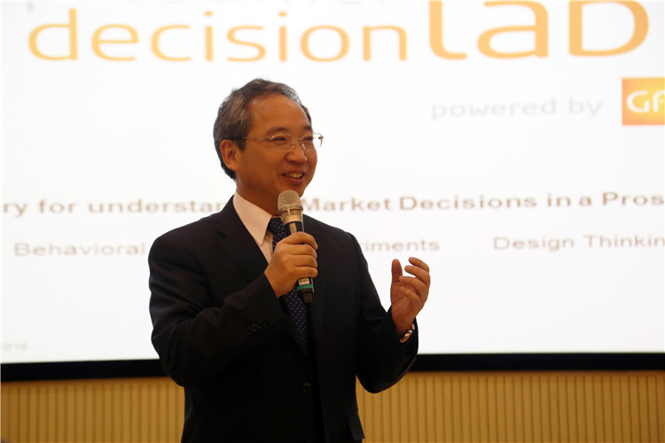 RaimundWildner副总裁、赵新宇总经理先后发表致辞,寄望于通过与中财合作打造的实验室,帮助学生更多地了解市场研究,提供一个创新的机会,共同完成更多的创新实验。最后, Andreas Neus董事总经理详细介绍了消费决策综合研究实验室的背景及情况,并在实验室向师生们现场展示了实验软件的使用。