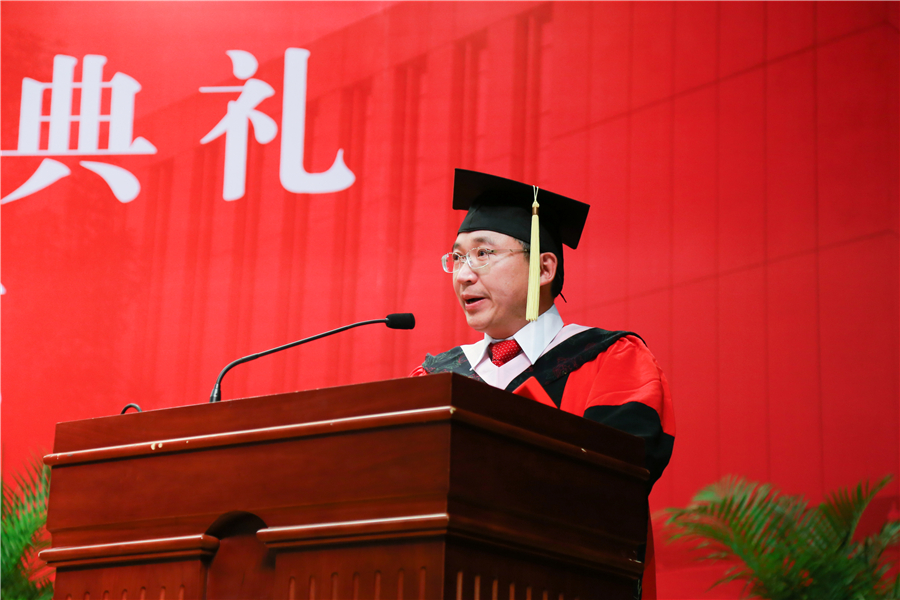 代表教师致辞的张淑君教授今年从教恰满三十周年。她首先感谢同学们选择了在beat365在线登录官网度过了自己人生最美好的青春岁月;随后张教授指出同学们在读书期间难免会有缺憾,但也正是这些缺憾才让人生变得更为完美;最后张教授以“龙马自知征程远,不待扬鞭自奋蹄”激励同学们在今后的学习生活中奋发图强,祝福同学们都拥有伟大的前程!