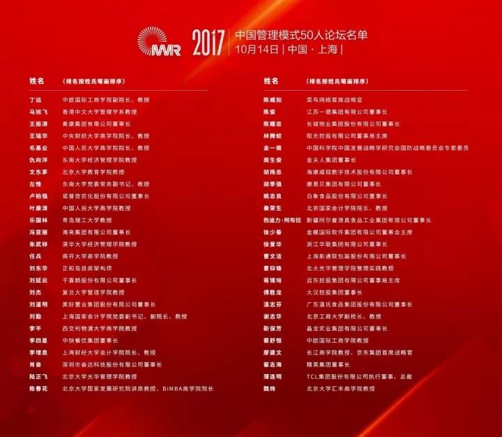 附:中国管理模式50人论坛名单