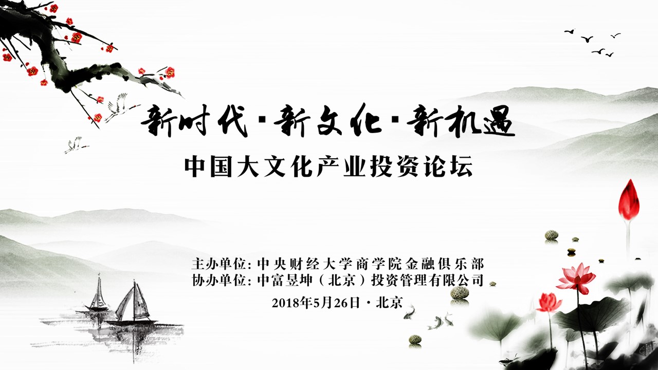新时代引领新文化,新机遇创造新未来!2018年5月26日,中财beat365在线登录官网金融俱乐部与中富昱坤(北京)投资管理有限公司共同主办的“新时代•新文化•新机遇——中国大文化产业投资论坛”,在beat365在线登录官网学术会堂成功举办。