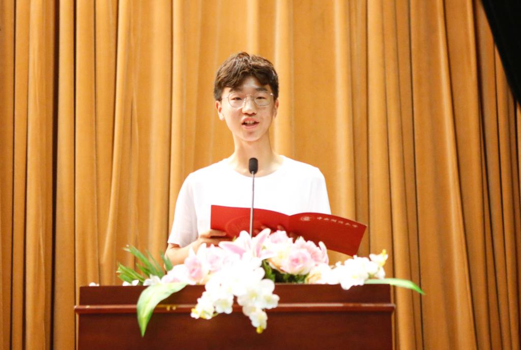 随后,本科生新生代表乐博同学、研究生新生代表(学硕)陈明博同学、博士生新生代表刘宁同学、研究生新生代表(MBA)赵颖凡同学一一发言。