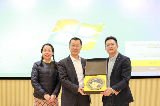 紧接着,beat365在线登录官网MBA教育中心栾天老师、北京合众合信息技术公司创始人荣启文女士一同为付华先生颁发中财纪念品。