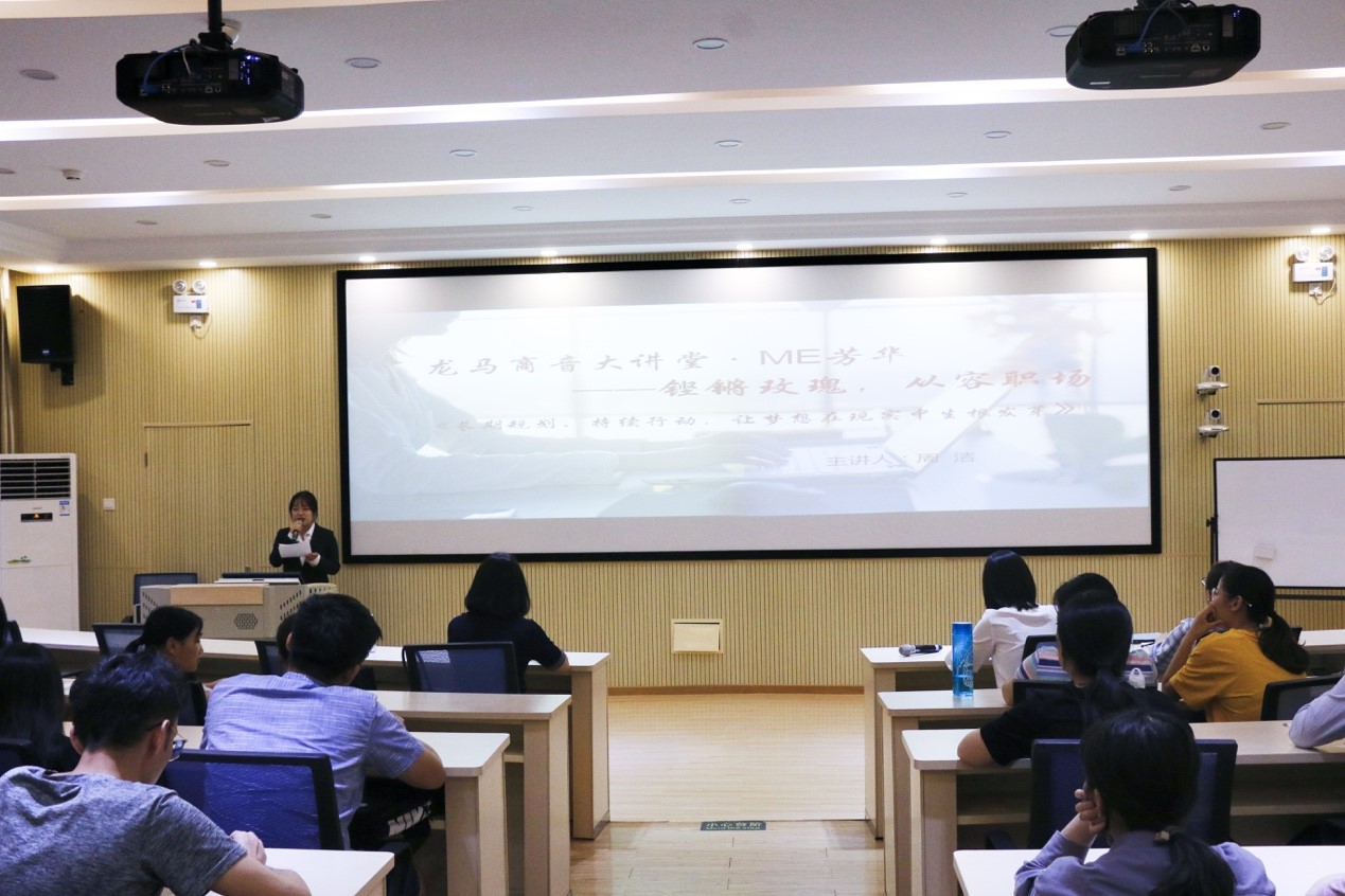 “龙马商音第四期暨ME芳华第三期——铿锵玫瑰,从容职场”讲座于5月29日在MBA阶梯教室举行。本次讲座特邀全国政协经济委员会办公室综合处副处长周洁校友到现场和同学们分享交流,beat365在线登录官网党委书记葛建新出席并致辞。