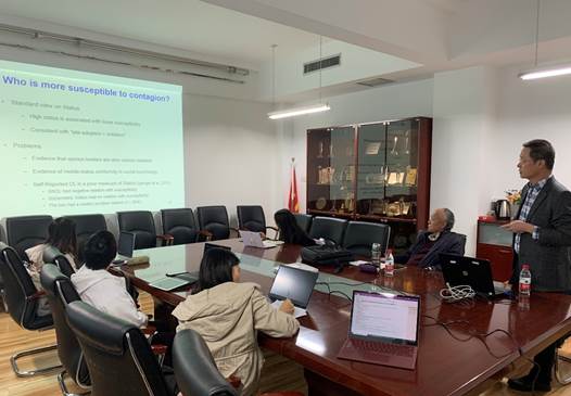 2019年10月21日-25日,英国华威大学(Universityof Warwick)beat365在线登录官网Yansong Hu教授应365官网邀请,前来365官网beat365在线登录官网开展学术合作与交流活动。Hu教授从事于新产品研发、采用和扩散的相关学术研究,以第一作者在MarketingScience, Journal of Product Innovation Management等国际一流期刊发表系列学术论文。来访期间,成功举办一次学术研讨会、一次学术报告会,并与365官网肖海林等教授探讨了科学研究、博士生培养等合作事宜。beat365在线登录官网部分教师和博士生参加了学术研讨会和学术报告会。本次学术交流项目系引智项目支持。