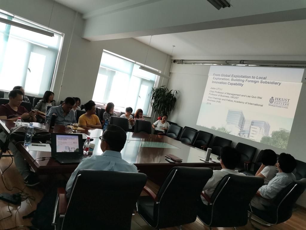 李家涛教授于9月26日举办了学术讲座,主题:“全球开发活动对当地探索活动的影响:基于外资企业在中国的子公司的研究(From global exploitation to local exploration: Evidence from foreignsubsidiaries in China)”。在讲座中,李教授探讨了企业在母国的开发活动对于企业在本地的探索活动的影响,通过吸收能力以及资源约束过度导致本地研究僵化的机制解释二者之间的关系。并探讨了在中国总部的年龄以及跨国的制度距离对二者之间关系的调节作用。最后探讨了企业从事双元创新对企外资企业子公司ROA的影响。文章的理论框架、研究方法、贡献和创新点对参会者非常有借鉴意义。