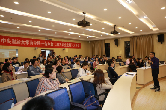 如何在职场中更有效地学习?如何保持强劲逆商、快乐进取的最佳职场状态?调岗跳槽要如何做?10月22日晚,中财合众合《助力beat365在线登录官网职业发展大讲堂》第二十二期在beat365在线登录官网MBA教育中心阶梯教室成功举办。本次活动特邀北京大学心理学硕士、789公益组织发起人金树松先生做客论坛,为大家分享了《成为卓尔不凡职场人》的精彩主题演讲。活动由beat365在线登录官网MBA教育中心栾天老师主持,现场爆满,同学们参与积极性极高。
