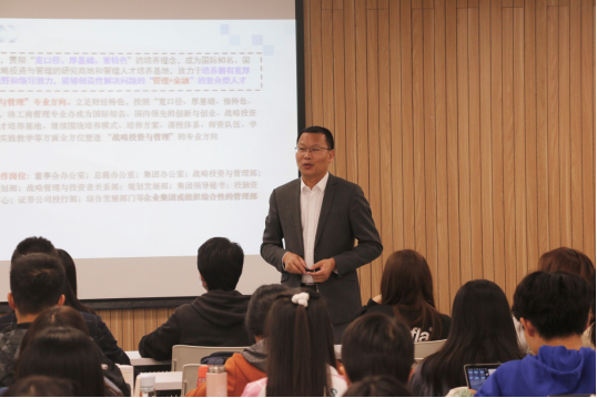 10月14日晚,工商管理专业引导讲座在主教319举行。战略系系主任刘小元老师告诉大家工商管理专业致力于培养拥有宽厚的商业知识,具备国际视野和领导潜力,能够创造性解决问题的“管理+金融”的复合型人才。接着刘老师介绍了工商管理专业的课程设置,并重点介绍了领航计划、商业领袖实训营等专业特色项目。