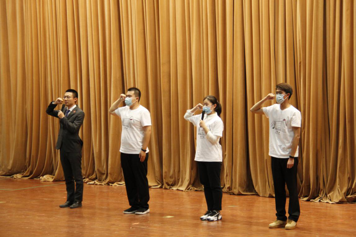 典礼接近尾声,全体新生在四位新生代表的领誓下庄严宣誓。“我,庄严宣誓,热爱祖国,忠于人民;诚信正直,尊师重道;勤奋学习,积极创新;担当责任,追求卓越;以工商管理之学识,成经世济民之英才。”