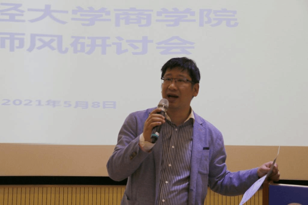 在交流研讨部分,与会老师结合自身工作实际,围绕如何建立学院师德师风长效机制建设,进行了经验交流和探讨。如在学院层面,建立本科生导师制度,进一步丰富完善“三全”体系;将师德师风作为评价教师素质的第一标准,在教师聘用、考核、晋升、评优评奖中充分体现,对师德师风失范行为实行一票否决。在各系层面,积极开展学习宣传,自主开展师德师风专题学习教育活动,学习国家和教育部文件精神,学习先进教师榜样;鼓励教师参与建设学生的第二课堂培养,如商业领袖实训营、工商管理专业领航计划、大数据菁英班、学术新秀班、专业竞赛等,培养新时代复合型人才;把师德师风建设融入到课程思政建设中,严把教材选用关。