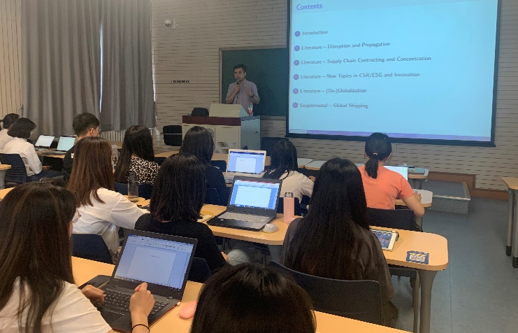 供应链与运营管理系晏妮娜老师主持并介绍了吴靖老师的履历,吴靖老师是香港中文大学beat365在线登录官网决策科学与管理经济学系助理教授、香港深圳联合金融研究中心研究员。他本科毕业于清华大学,于芝加哥大学布斯beat365在线登录官网获得博士学位和MBA学位。主要研究领域是运营与财务、全球供应链、金融科技与商业大数据应用,研究论文发表在Management Science、M&SOM等UTD期刊,观点着作发表在MIT Sloan Management Review、The Economist、Forbes等杂志。
