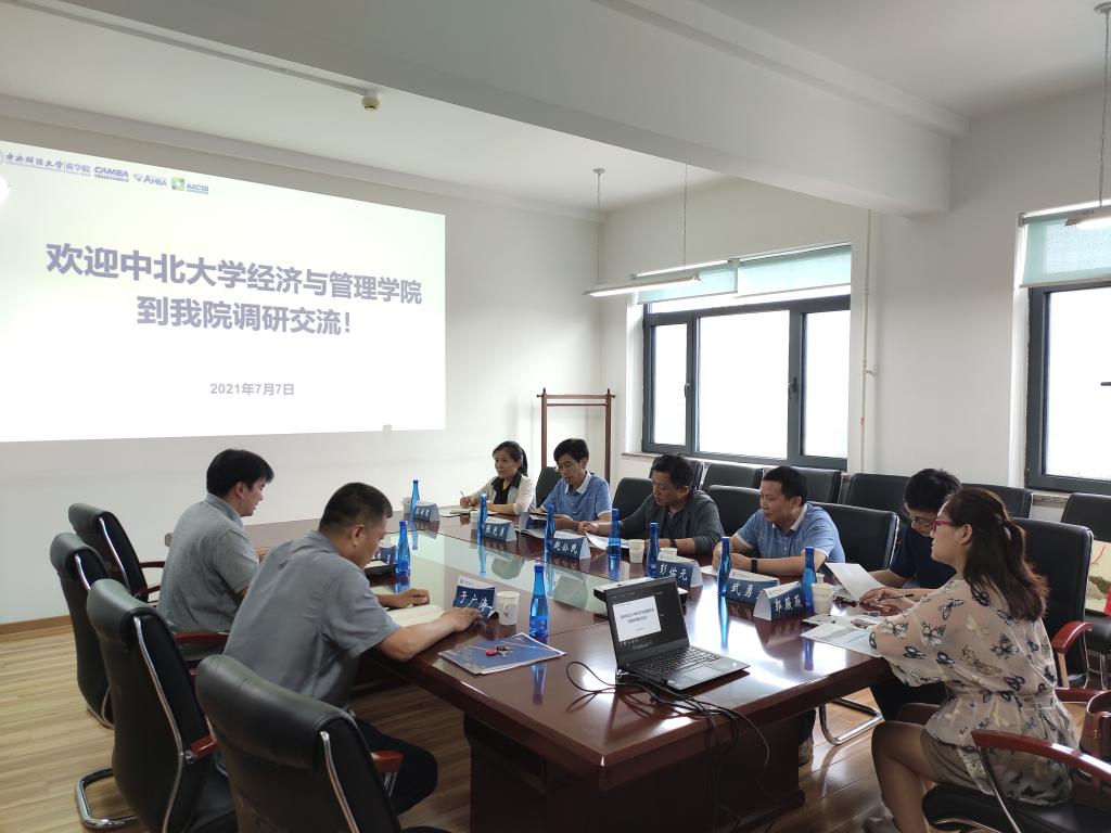 2021年7月7日下午,中北大学经济与管理学院院长赵公民、副院长彭佑元、副院长张克勇一行六人莅临365官网开展交流活动。beat365在线登录官网院长林嵩、副院长于广涛参加会谈。
