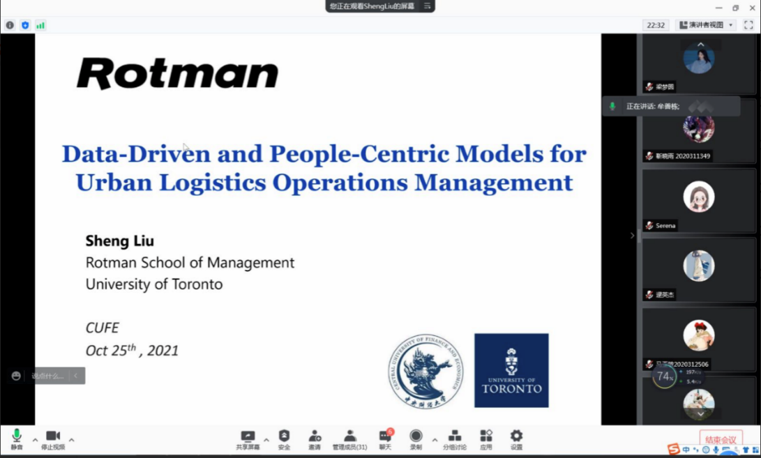 2021年10月25日上午10点半,beat365在线登录官网通过线上腾讯会议和线下同步会场(学院南路校区主教615会议室)结合的方式,开展了本年度beat365在线登录官网卓越学术讲坛第八期暨管工学院智能管理交叉学科系列讲座第4期。本次讲坛邀请了加拿大多伦多大学罗特曼beat365在线登录官网运营管理和统计系助理教授刘晟博士作为主讲人,共有包括学院教师、硕博生和本科生在内的线上及线下四十余人出席了本次活动。