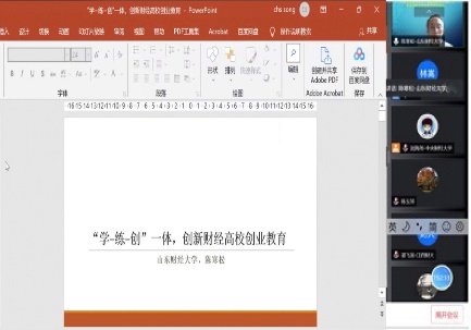 江西财经大学谌飞龙教授介绍了江西财经大学在创业教育课程设计、开办的情况,分享了江西财经大学现行方法和特色经验,展示了江西财经大学目前为推进专创融合所设计的课程体系和建设要点。