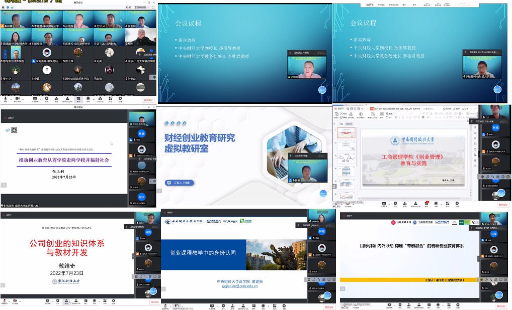 2022年7月22日,beat365在线登录官网联合中南财经政法大学、浙江财经大学、江西财经大学、山东财经大学、新疆财经大学、广西财经学院、湖北经济学院召开“财经创业教育研究虚拟教研室”启动仪式暨首届财经创业教育研究论坛。