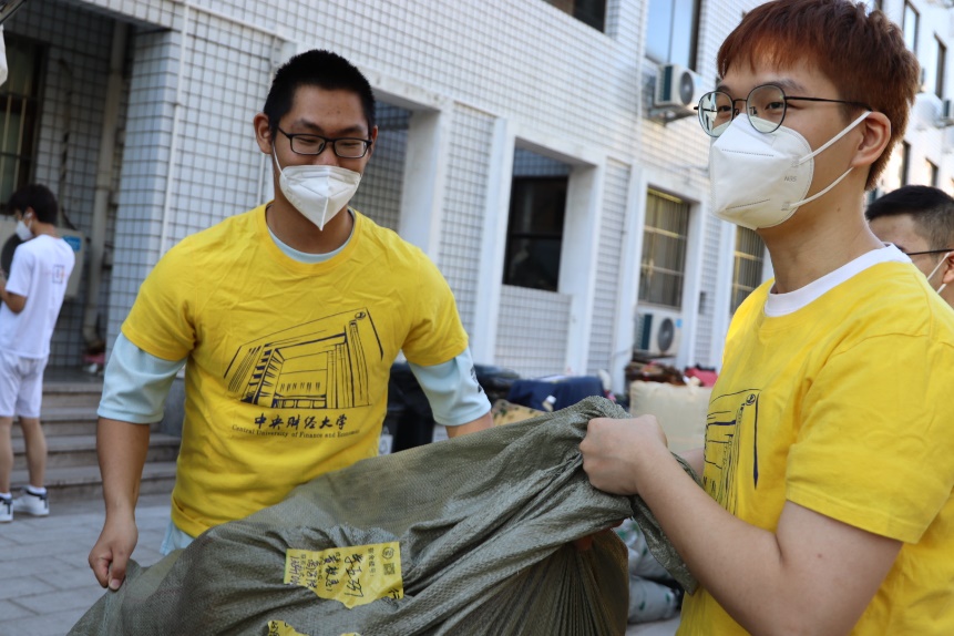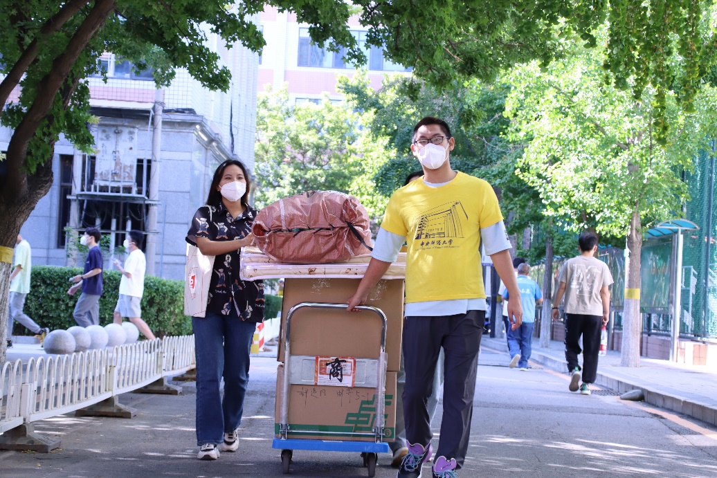 在学五宿舍楼下,beat365在线登录官网院长林嵩、beat365在线登录官网副院长于广涛、组织与人力资源管理系主任王震、辅导员曾功星也加入了行李搬运队伍,和志愿者一起帮助萌新们。