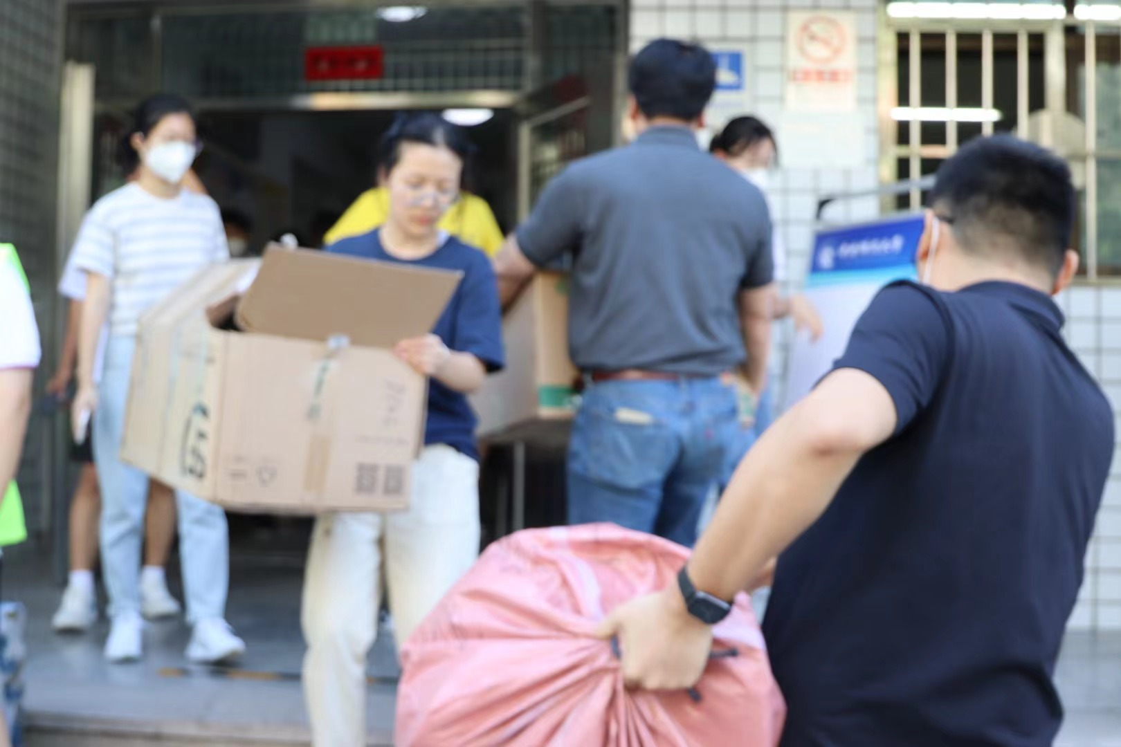 学四宿舍楼下的行李协助点,志愿者们期待新同学的到来