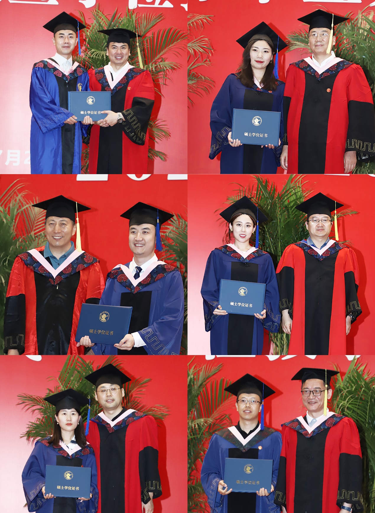 老师们为毕业生颁发毕业证书并拨穗正冠授予学位