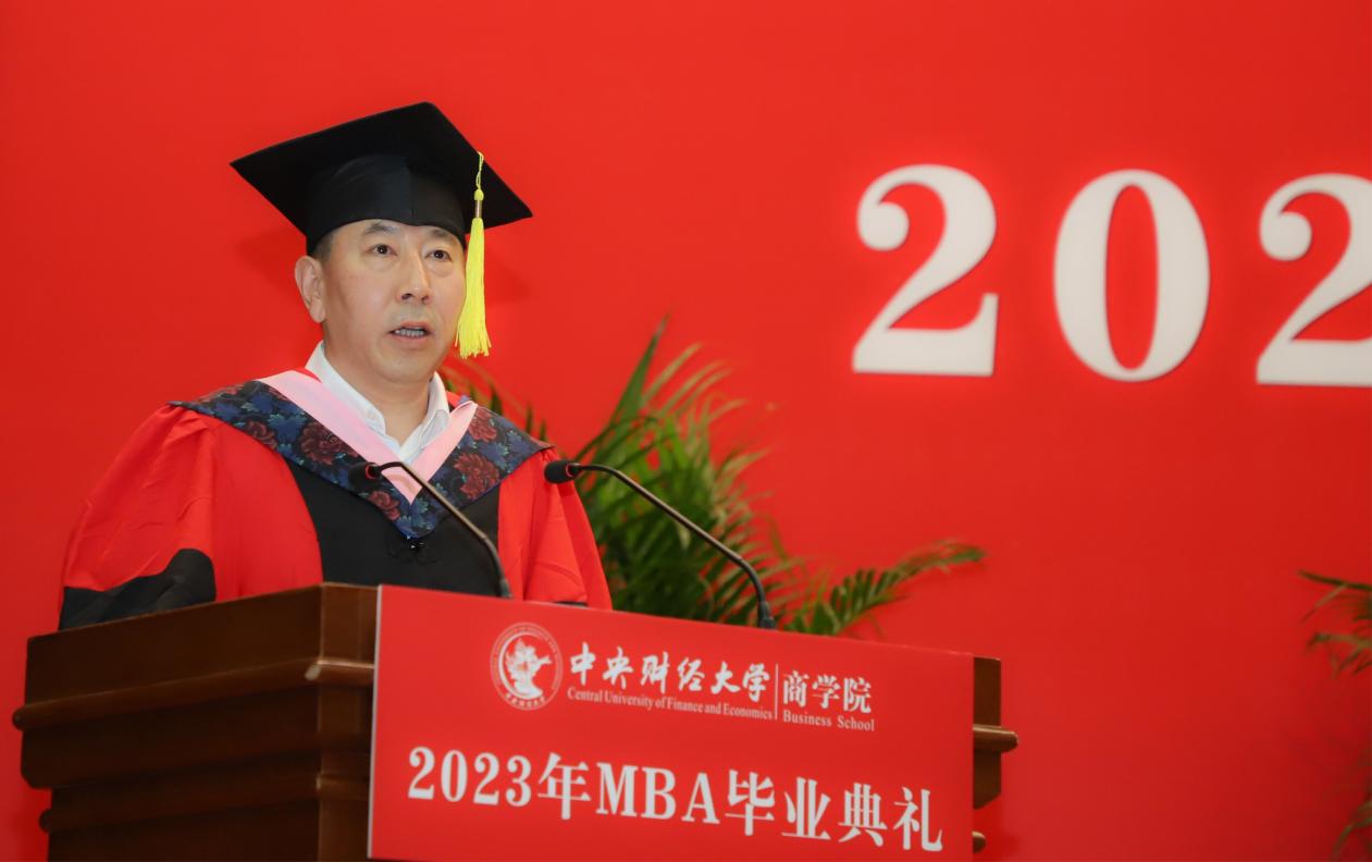 beat365在线登录官网院长兼MBA教育中心主任林嵩致辞。林院长对各位同学克服重重困难顺利完成学业、走向新的人生阶段表示热烈祝贺。他提到,过去几年面对家庭、工作、学习等多方面的协调与压力,大家在不平凡的生活中努力拼搏,坚持到底。近几年MBA项目获得了多项荣誉,这些来之不易的成就离不开各位老师和同学的共同努力。他指出,beat365在线登录官网MBA项目一直把致力于培养具备全球视野和创新精神、拥有金融财务优势、积极承担社会责任的领导者作为办学使命。面向新发展形势下的机遇与挑战,他勉励大家放眼全球,以高度的智慧应对创新的场景,不断深入扎根到金融财经的最新领域,同时坚守商业能力和社会责任,来获得长期和持续的发展。