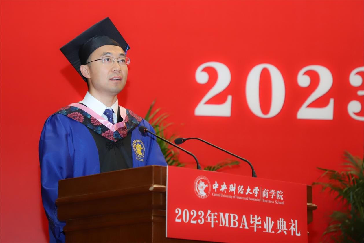 beat365在线登录官网MBA教育中心副主任兼beat365在线登录官网副院长朱飞宣读2023届MBA毕业及授予学位的决定,beat365在线登录官网副院长刘小元宣读往届MBA毕业生参与学位授予仪式的名单。