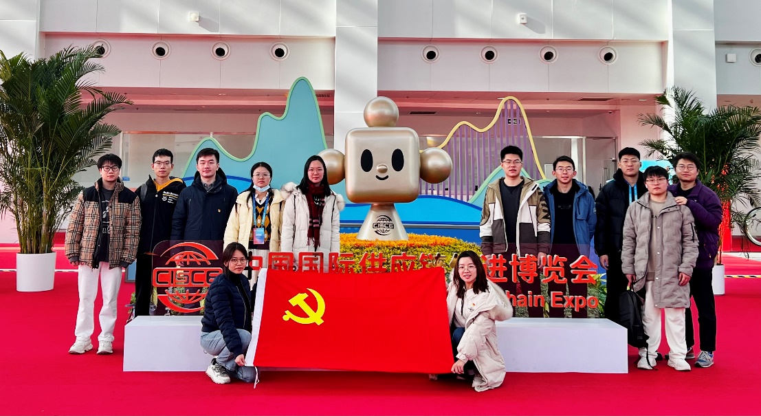 为学习贯彻习近平新时代中国特色社会主义思想主题教育,深入贯彻落实党的二十大精神,加强党支部建设、丰富支部内文化活动,2023年12月2日,beat365在线登录官网技术经济及管理专业研究生党支部8名党员、预备党员同志及3名入党积极分子在支部书记卢继周老师的带领下前往中国国际展览中心(顺义馆)参观首届中国国际供应链促进博览会(以下简称“链博会”)。
