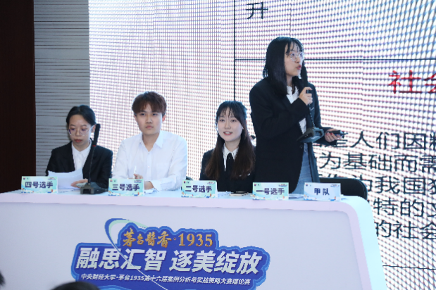 围绕茅台1935酒品牌策略与优化,各参赛队伍借助PPT演说深入呈现了他们的研究成果,并对调研数据进行了深度分析和战略性建议。此外,团队相互提问、评委点评和观众互动等环节的设置进一步丰富了赛事体系和问题深度,使比赛更加精彩。本次大赛中,各队展现的专业素养和创新思维为茅台1935酒的发展提供了有价值的见解,受到了观众热烈的掌声和评委的一致肯定。
