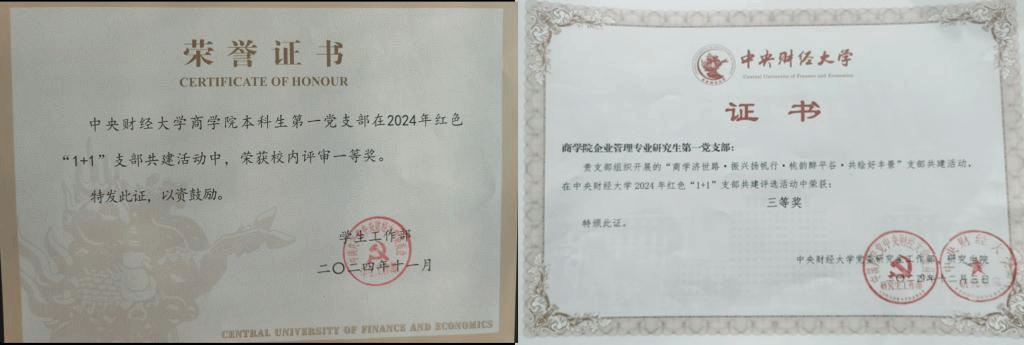 近日,beat365在线登录官网2024年红色“1+1”共建活动校内评审会在学院南路校区圆满落幕。在此次评审中,beat365在线登录官网本科生第一党支部和企业管理专业研究生第一党支部分别荣获一等奖和三等奖。