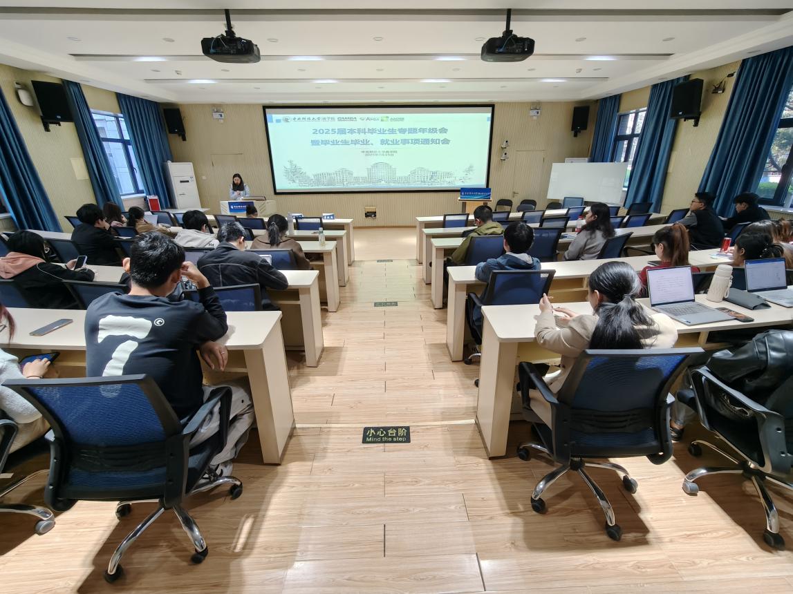2021级本科毕业生专题年级会暨毕业生毕业、就业信息会于3月25日顺利开展。会上,学院党委书记李跃新结合当前就业形势,针对升学、留学、二战和就业等不同去向为同学们提出具体建议,并提醒同学们要以积极心态应对毕业季。学院党委副书记杨中英进一步向毕业生强调就业工作的重要性,介绍了学校、学院的就业支持措施,号召毕业生积极参加校园双选会,并充分利用就业信息、简历指导等资源。21级本科生辅导员王惠婷详细讲解了毕业前的重要事项,帮助同学们明确重要时间节点,特别提醒毕业生要规范完成毕业论文、实习报告等,确保顺利毕业。