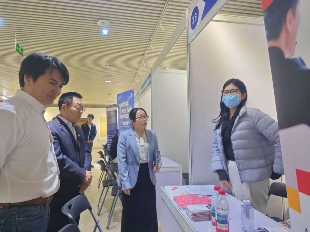 各主办学院的书记、院长等领导班子成员也来到招聘会现场,与用人单位代表展开交流,并与现场学生亲切交谈,了解招聘情况、行业动态和市场需求。
