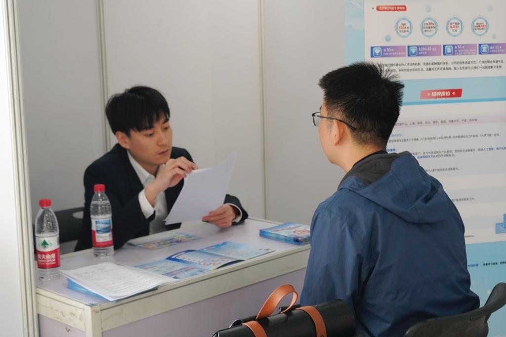 招聘会现场设置了企业展示区与现场交流区。在企业展示区,各用人单位通过展板、宣传手册等多种形式展示企业情况、企业文化及岗位需求,方便学生自主了解并选择心仪岗位。在现场交流区,学生们积极与企业代表进行沟通,深入了解岗位职责和职业发展前景,向企业代表展示专业基础和实践能力,用人单位也通过学生简历和现场交流表现进行初步的评估和选拔,招聘会现场气氛热烈。