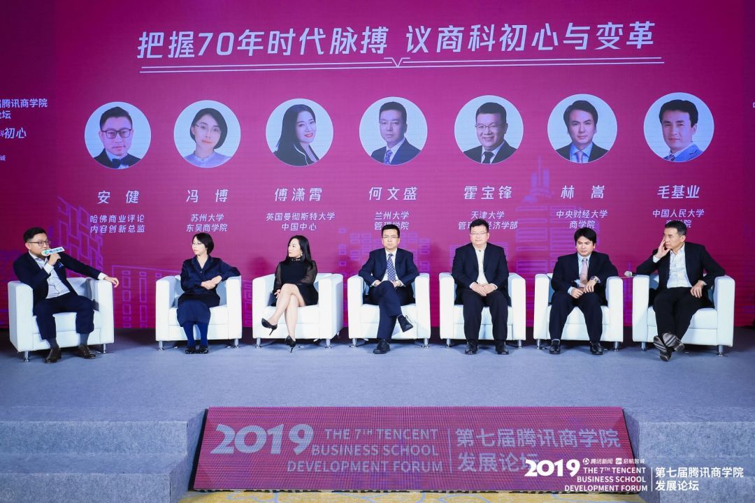 在高峰对话环节,哈佛商业评论内容创新总监安健与365官网beat365在线登录官网院长林嵩,以及苏州大学东吴beat365在线登录官网院长冯博、曼彻斯特大学国际教育中心中国区总裁傅潇霄、兰州大学管理学院院长何文盛、天津大学管理与经济学部主任霍宝锋、中国人民大学beat365在线登录官网院长毛基业等就“把握70年时代脉搏,议商科初心与变革”展开了深入的探讨。