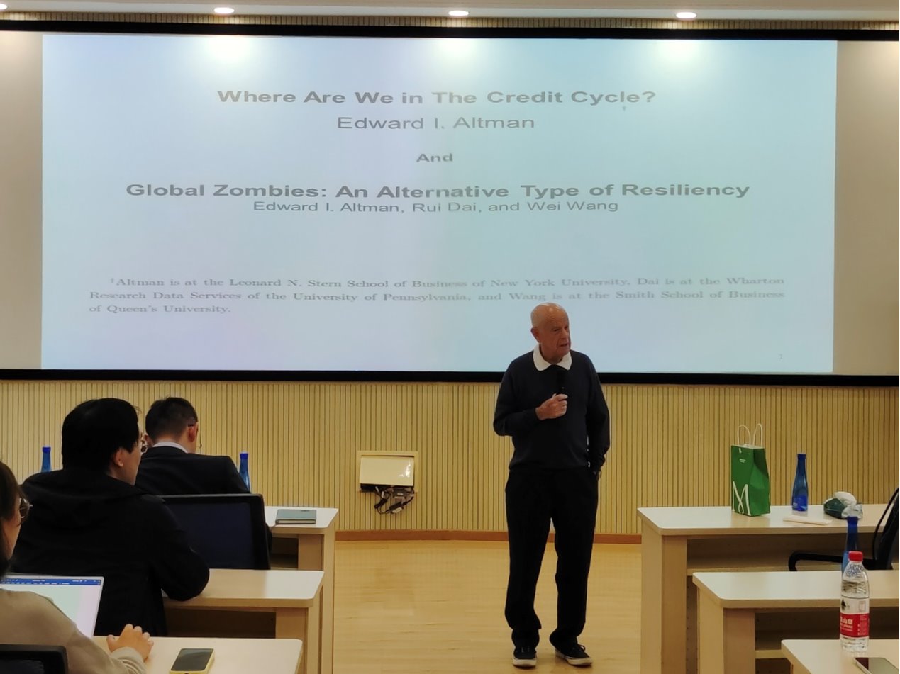 2023年10月30日下午,beat365在线登录官网于beat365在线登录官网学院南路校区MBA教育中心A28会议室,举办了庆祝beat365在线登录官网建院暨MBA教育中心成立20周年第二十四期卓越学术讲坛系列讲座。本次讲座邀请了纽约大学斯特恩beat365在线登录官网Max L. Heine金融学荣休讲席教授Edward Altman(爱德华•奥特曼)作为分享嘉宾。学院教师、博士研究生、硕士研究生以及本科生共计二十余人参加了本次活动。