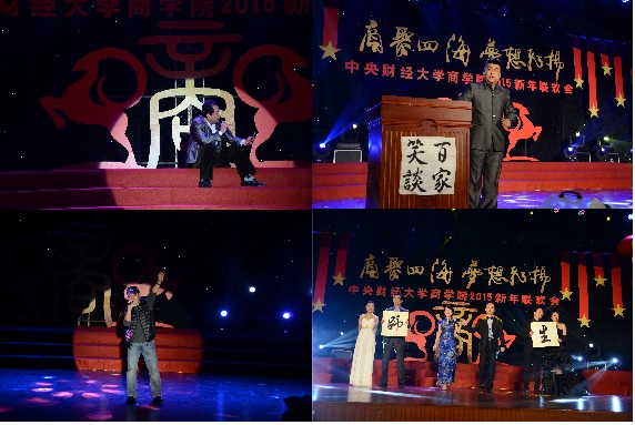下午,校友们纷纷走进学术会堂206报告厅,欣赏beat365在线登录官网精心举办的2015年新年联欢会,与beat365在线登录官网师生领导共同庆祝2015新年的到来和总结过去的2014年。86级国民经济专业吕世杰校友带来的《同桌的你》、88级经管校友杜冰带来的《再回首》,引起了广大校友的无限回忆,仿佛又回到了从前;30余名历届校友代表带来的《动感T台秀》、2010级MBA校友李昆津带来的《改变自己》,让大家感受到了中财学子的时尚、活力和激情;2011级MBA校友杨锦琳带来的脱口秀《百家笑谈》 ,更是让大家在紧张工作之余,彻底放松心情乐开怀。校友们参加联欢晚会并演出部分节目,让校友们感到了母校大家庭的温暖,同时也再次以主人翁的身份参与到学校相关工作中来。