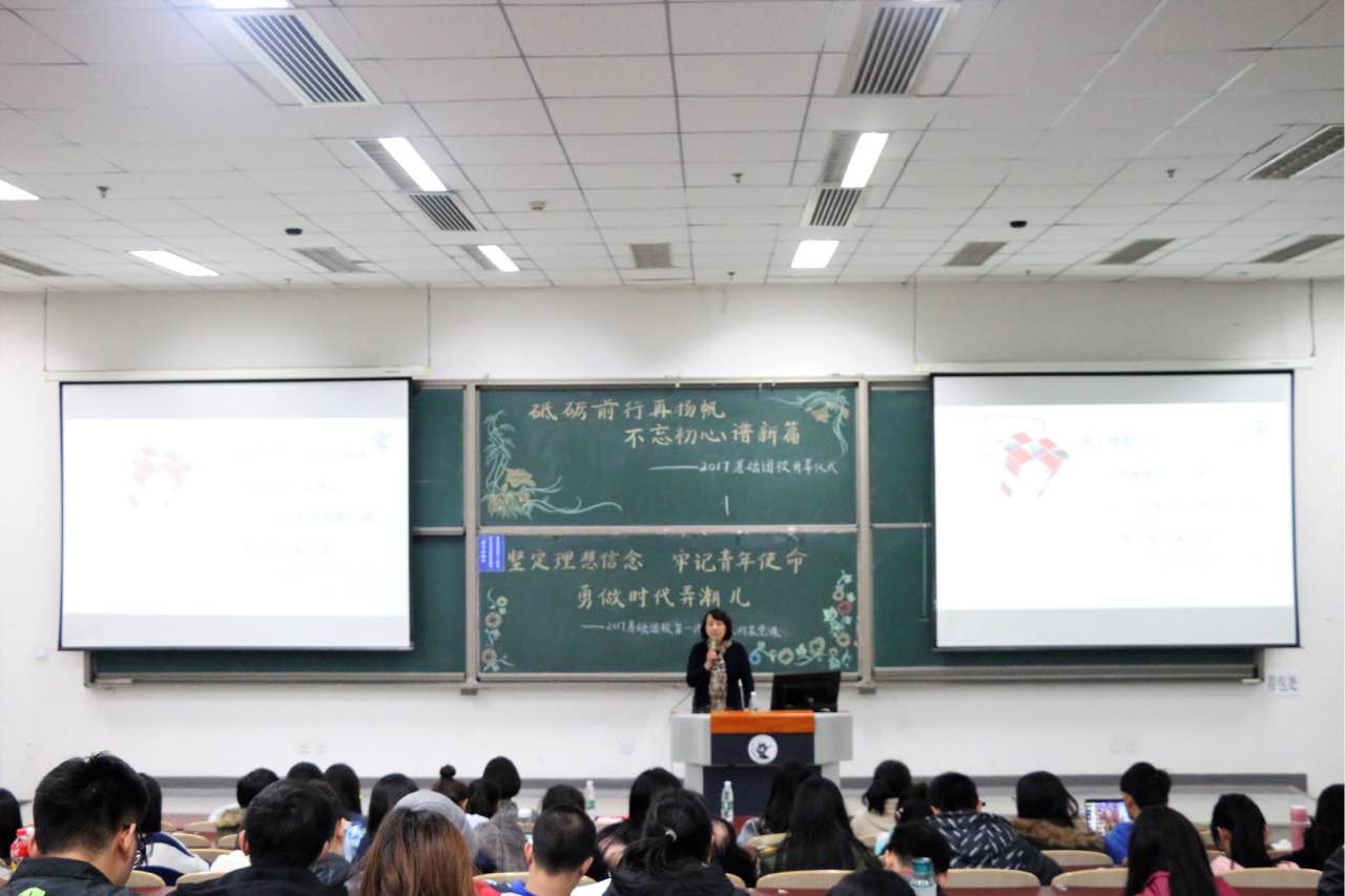 2017年11月15日下午,beat365在线登录官网党委副书记王容老师面向beat365在线登录官网2017年度发展对象和基础团校学员开展理想信念教育讲座。讲座以“坚定理想信念,牢记青年使命,勇做新时代弄潮儿”为主题,结合十九大报告内容和青年学生理想信念教育展开。