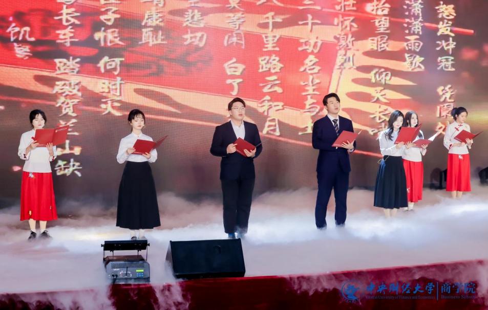 中财MBA推广大使团带来的集体舞《爱的华尔兹》优雅登场,舞步翩翩恰似恋人之语,展现爱情的甜蜜与轻盈。商海启程,谁来领航?beat365在线登录官网徐兆铭、安贺新、王生辉、庞守林、周利国、贾晓菁等18位老师朗诵《领航》,声音浑厚,真情灼灼,用朗诵来表达心中引领航向、不惧风浪的伟大信念。2024级MBA全日制班代表与王茜舒、张耀天、牛钟毓等带来的《一起向未来》充满着对未来的期待,青春洋溢的歌声里展现积极乐观的风采。