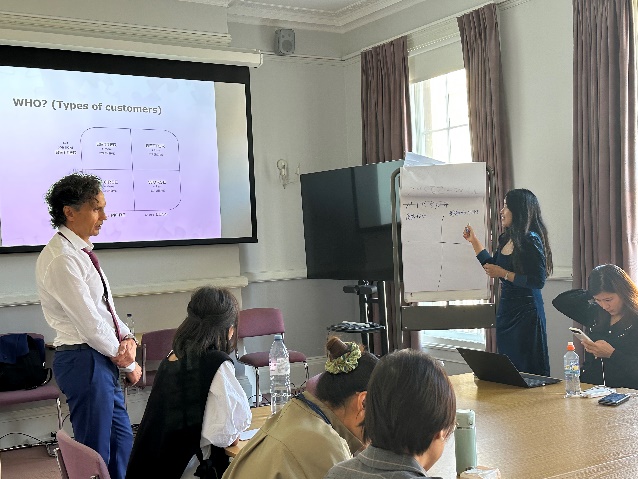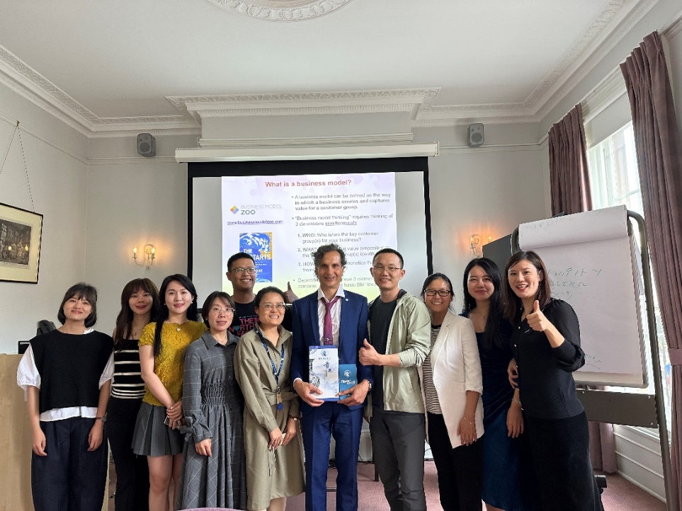 在参访中,剑桥企业中心国际拓展计划研究员、剑桥大学i-Teams创新项目导师布莱恩·科贝特介绍了剑桥企业中心的主营业务、近几年在科技成果转化方面取得的成效,以及围绕剑桥大学所建立起来的商业生态系统与运作模式。剑桥企业中心国际拓展计划研究员、Cambridge Funding Solutions 创始人亚历克斯·史密兹分享了剑桥科技园的运营及其在孵化器和加速器方面的发展历程与新模式。通过本次参访,同学们就中西企业孵化模式差异有了全面、深入的了解认识,自主创业的同学就自身的行业情况与剑桥企业中心的潜在合作机会进行了深入交流,取得了卓有成效的交流成果。