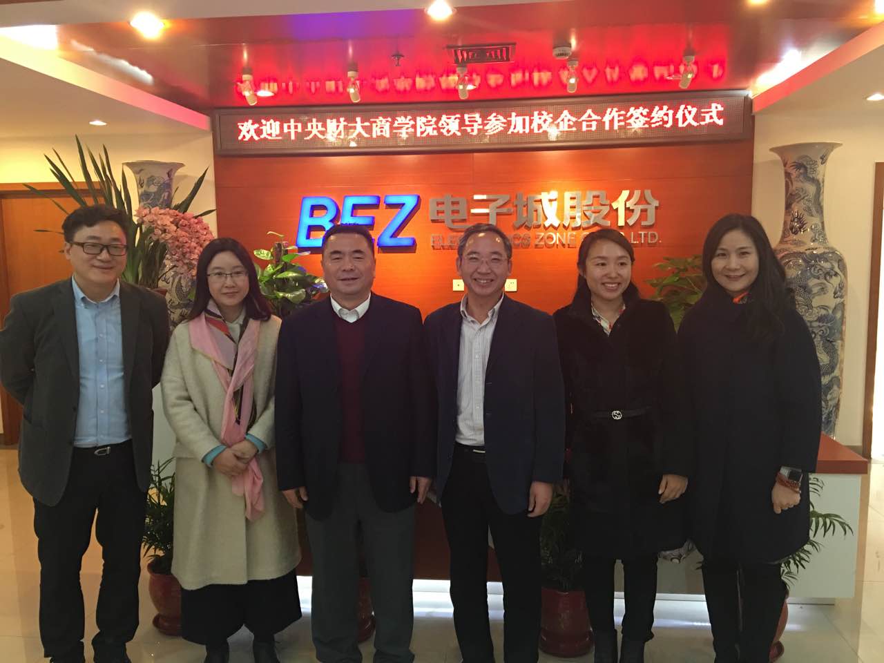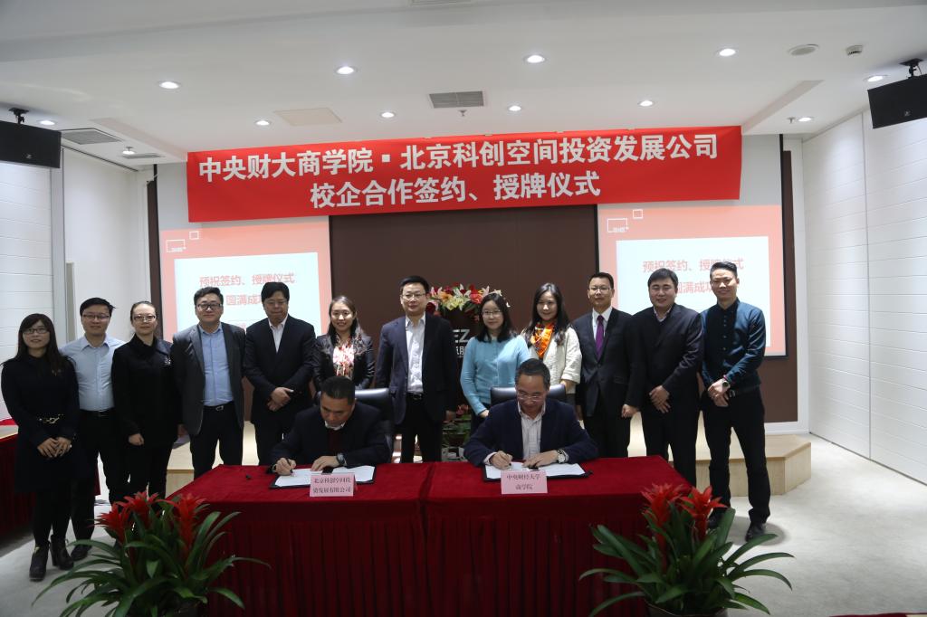 2015年12月18日上午,365官网beat365在线登录官网与北京科创空间投资发展有限公司校企合作签约暨授牌仪式在电子城股份6层多功能厅举行。beat365在线登录官网院长兼MBA教育中心主任王瑞华教授、党总支书记葛建新教授、MBA教育中心副主任贾晓菁教授、战略系主任刘小元副教授、MBA教育中心孔伟明、董硕老师以及中财MBA房地产俱乐部主席陈维校友出席了签约授牌仪式;电子城科创空间出席活动的嘉宾主要有北京电子城投资开发股份有限公司总裁兼北京科创空间投资发展有限公司董事长龚晓青、北京电子控股有限责任公司总经理助理、园区地产部部长兼北京科创空间投资发展有限公司董事潘金峰、北京电子城投资开发股份有限公司副总裁兼北京科创空间投资发展有限公司董事张南、北京电子城投资开发股份有限公司副总裁吕延强、北京电子控股有限责任公司园区地产部李斌 、北京科创空间投资发展有限公司总经理王俏梅、行政总监李锐、营销总监刘丽娟等。