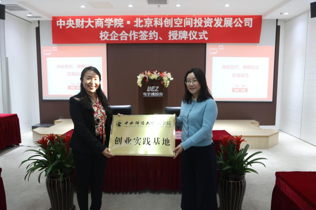 随后,北京科创空间投资发展有限公司总经理王俏梅简单介绍了科创空间项目实施、服务内容及合作机会,她希望能同365官网beat365在线登录官网在推荐师生创业项目、专场招聘会、推荐创业导师、课题研究等方面进行合作。接下来,王瑞华院长同北京电子城投资开发股份有限公司总裁兼科创空间投资发展有限公司董事长龚晓青先生签订了校企合作协议;葛建新书记代表学院、王俏梅女士代表北京科创空间投资发展有限公司相互授牌,beat365在线登录官网在科创空间挂牌设立“beat365在线登录官网学生创业实践基地”,科创空间在beat365在线登录官网挂牌设立“创E+创业创新研究基地”。