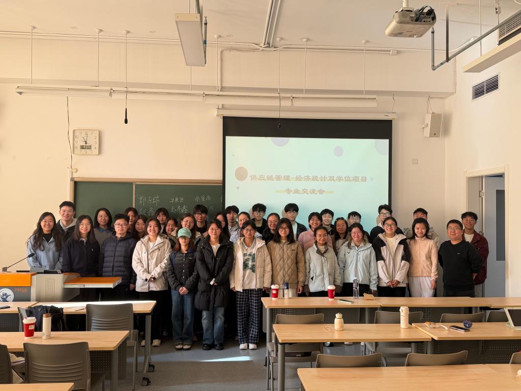 To help students of the "Supply Chain Management - Economic Statistics" Double Bachelor's Degree Program understand the learning directions and goals of the supply chain management major and consolidate their professional foundation, Teacher Mu Shandong (head teacher), Teachers Qi Yu and Wang Huiting (counselors) jointly organized professional teachers from the Department of Supply Chain and Operations Management of CUFE Business School to launch a series of professional exchange activities themed "Approaching Supply Chain Management" for the 2024 and 2025 cohorts of double-degree students.
