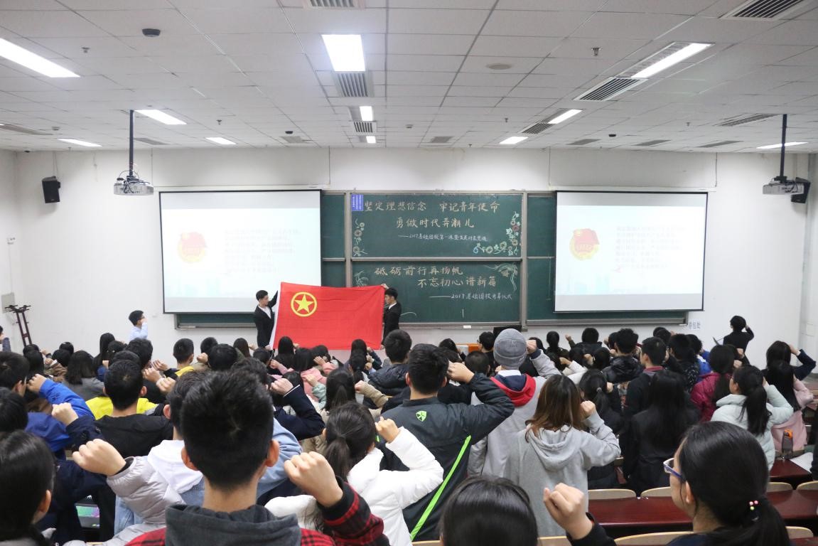 首先,全体学员起立、齐唱共青团团歌。随后,beat365在线登录官网学生会主席王令东带领团员重温入团誓词,大家高举右手庄严宣誓。