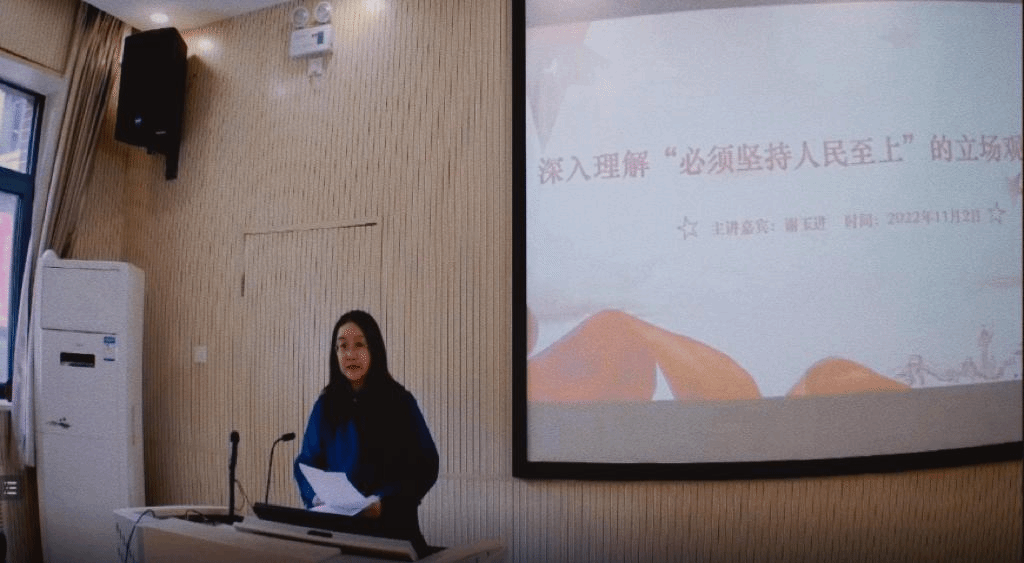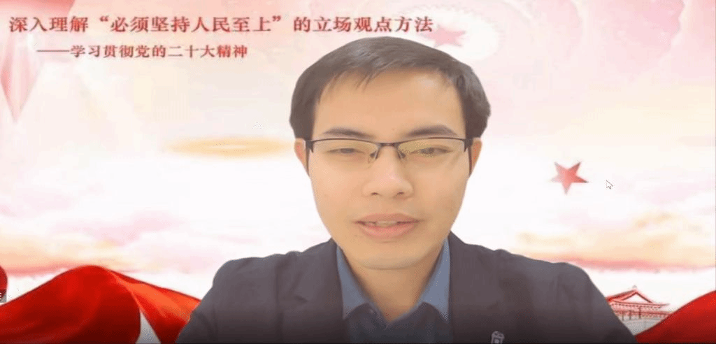 中国共产党第二十次全国代表大会于10月16日至22日在北京举行。为深入学习宣传贯彻党的二十大精神,把全党全国各族人民的思想统一到党的二十大精神上来,把力量凝聚到党的二十大确定的各项任务上来,根据《中共中央关于认真学习宣传贯彻党的二十大精神的决定》和学校党委有关工作要求,beat365在线登录官网党委于11月2日下午1时,组织召开学习宣传贯彻党的二十大精神专题讲座,特邀365官网马克思主义学院副院长谢玉进教授作“深入理解‘必须坚持人民至上’的立场观点方法——学习贯彻党的二十大精神”主题报告。beat365在线登录官网全体教师、学生党员、2022级新生通过线上、线下相结合的方式参加本次活动。