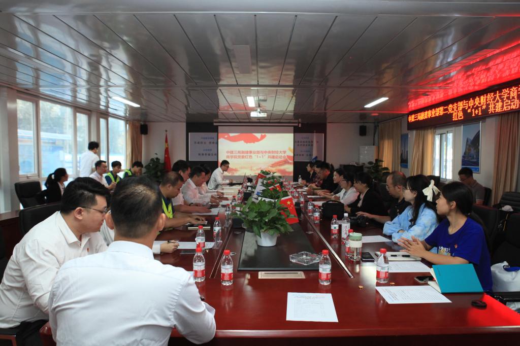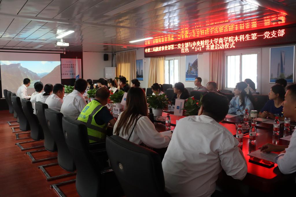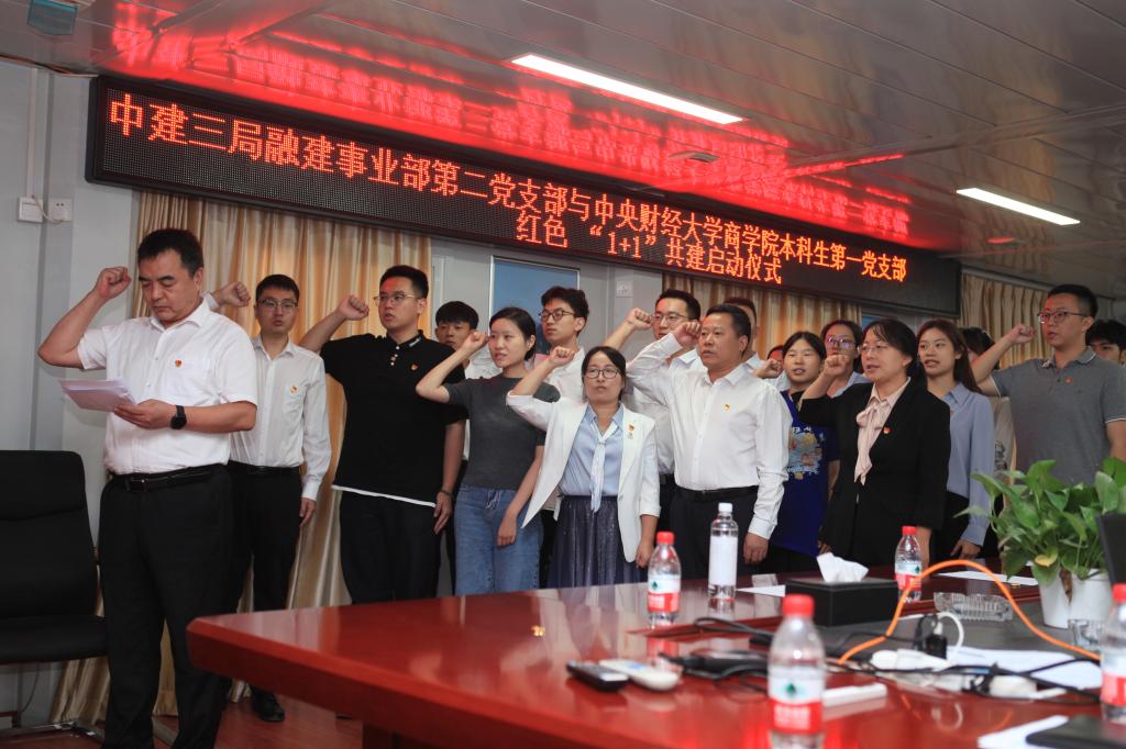 为深入学习贯彻党的二十大精神,认真组织开展学习贯彻习近平新时代中国特色社会主义思想主题教育,进一步加强党建引领,推动校企深度合作,2023年9月20日上午,beat365在线登录官网本科生第一党支部与中建三局融建事业部第二党支部在空军总医院项目基地开展红色“1+1”共建活动。中建三局融建事业部党总支副书记、工会主席吕三峰,工会副主席、综合管理部主任王艺霏,beat365在线登录官网党委副书记杨中英,beat365在线登录官网党委组织员、本科生第一党支部书记王志梅等两单位31名党员、入党积极分子代表和业务骨干参加了共建活动。融建事业部第二党支部书记贺志强主持共建仪式。